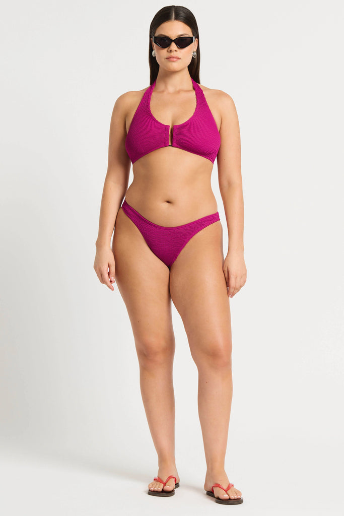 The Bailey Crop is halter-neck style, featuring a centre u-bar hardware detail. Handcrafted in Australia from The Authentic Crinkle™.