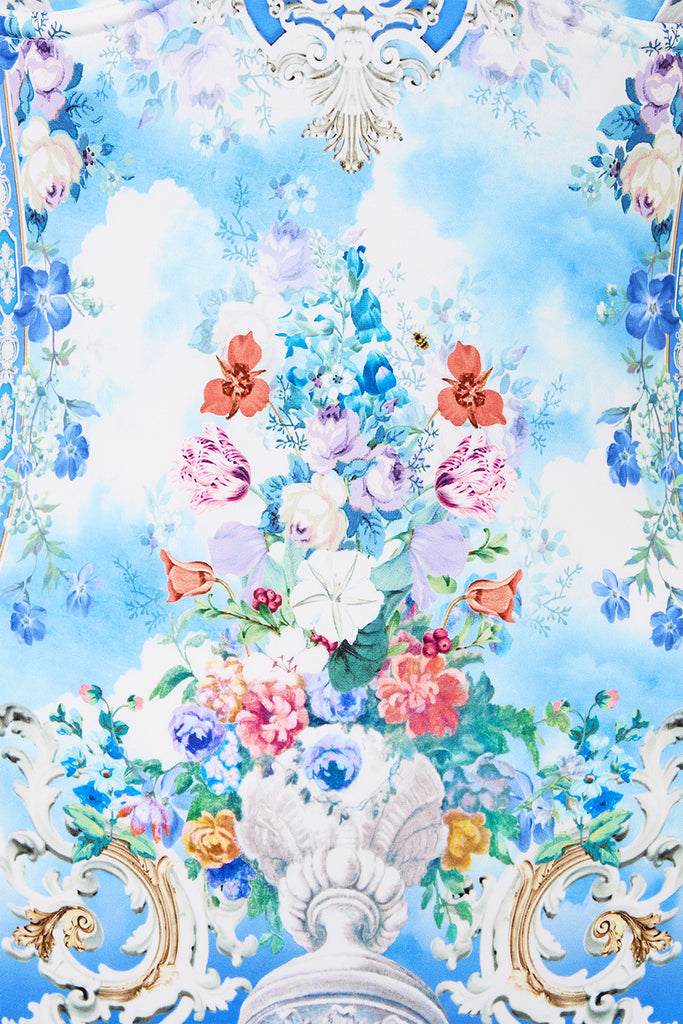 The Ottoman Opulence Soft High Triangle Underwire One Piece is a handcrafted silhouette designed by our in house artisans. Reimagined in an exclusive limited edition print, this one piece is made with C to D cups in mind with soft, removable cups, adjustable straps and underwire for personalised support. Its cut with a regular leg line and its finished with intricately placed crystal embellishments.