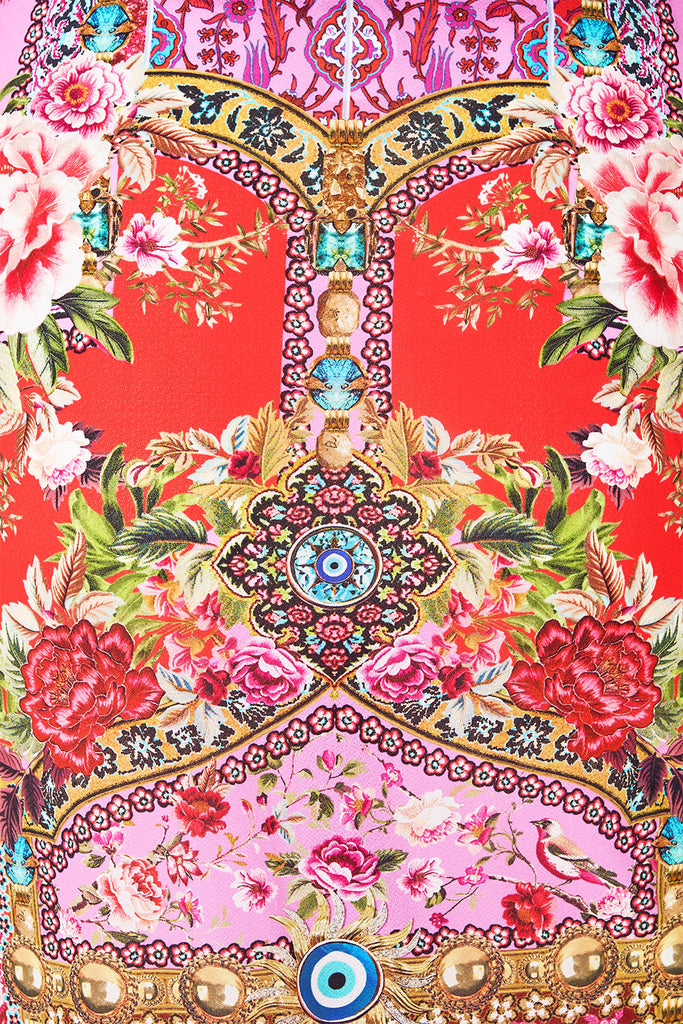 The Heirloom Empire Multi Wear Long Sarong With Frill Edge is a handcrafted silhouette designed by our in house artisans. Reimagined in an exclusive limited edition print, this long sarong can be styled in multiple ways with ties that wrap, cinch and knot effortlessly across the frame. Frilled edges adorn the design, adding a touch of playful detail.