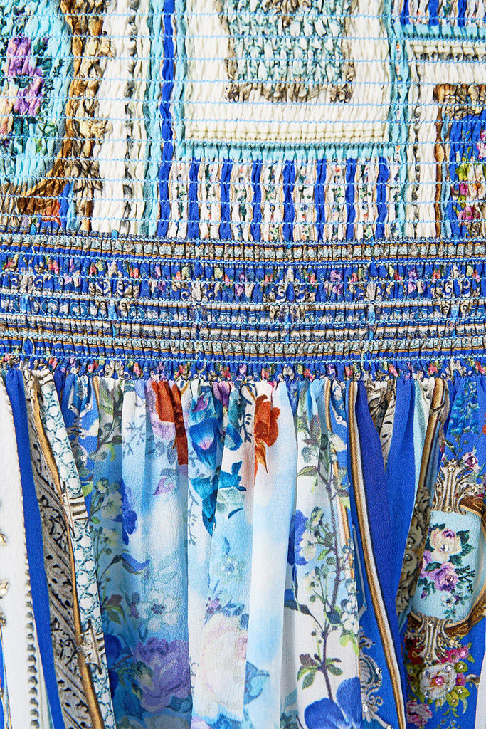 The Ottoman Opulence Short Shirred Skirt is a handcrafted silhouette designed by our in house artisans. Reimagined in an exclusive limited edition print, this mini skirt features a ruffled hemline and shirred waistband for effortless wear. It's finished with intricately placed crystal embellishments for luminous detail.