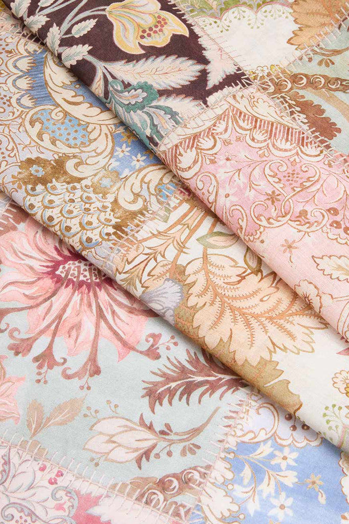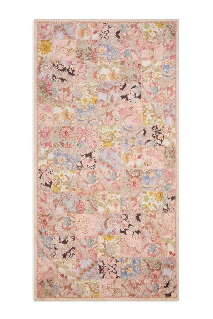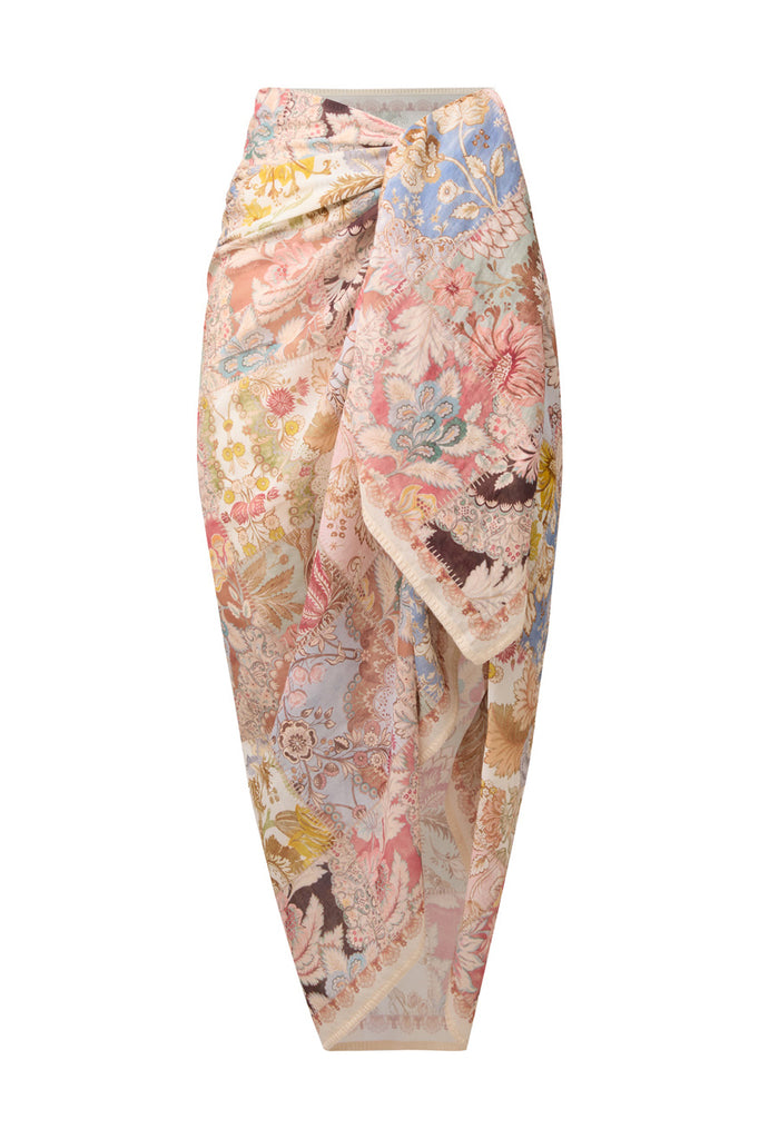 The Printed Cotton Pareo in Patch Multi from our Resort Swim 2026 Collection. A large rectangle cotton pareo featuring frayed edges and a placement print throughout.