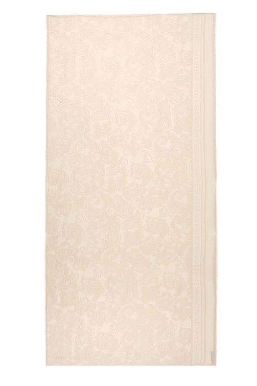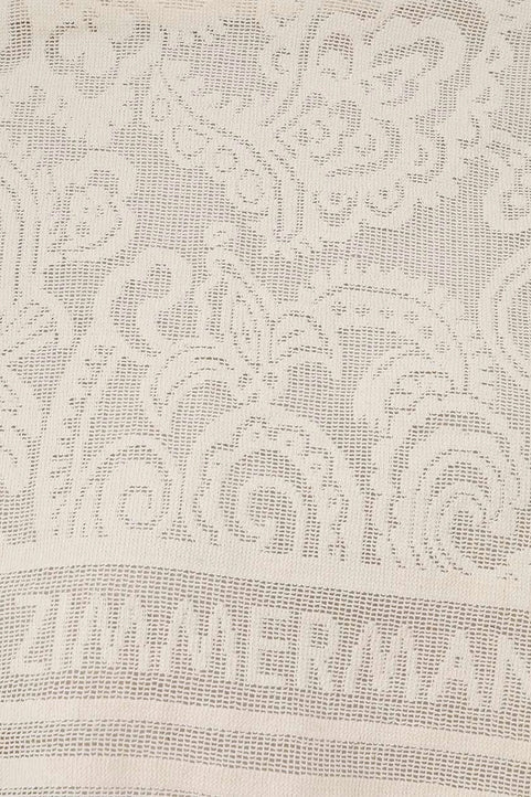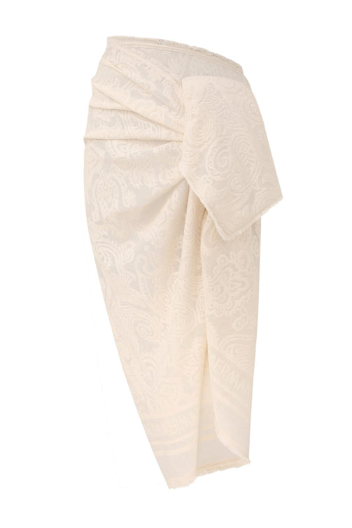 The Woven Pareo in Ivory from our Resort Swim 2026 Collection. A large rectangle cotton pareo featuring frayed edges and custom embroidery artwork throughout.