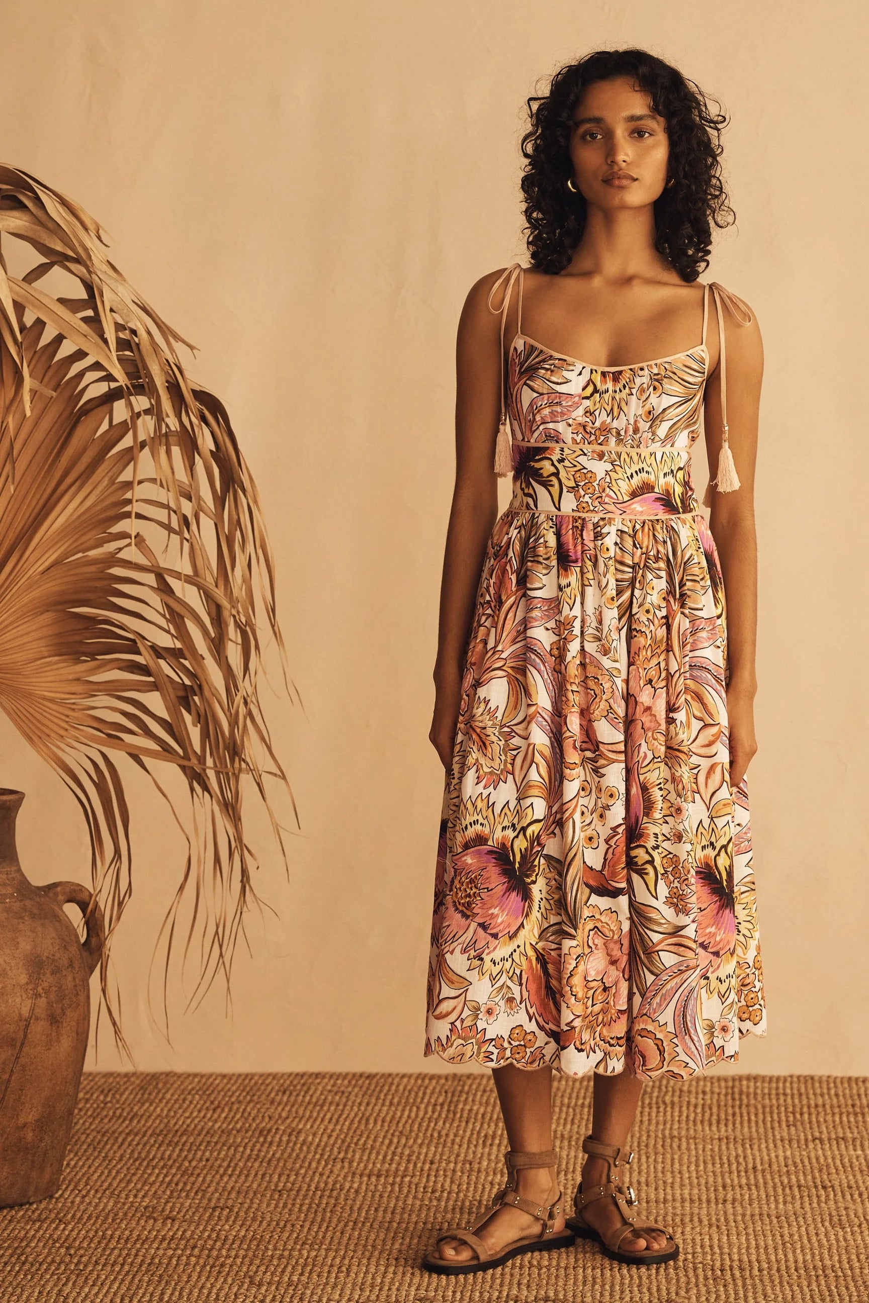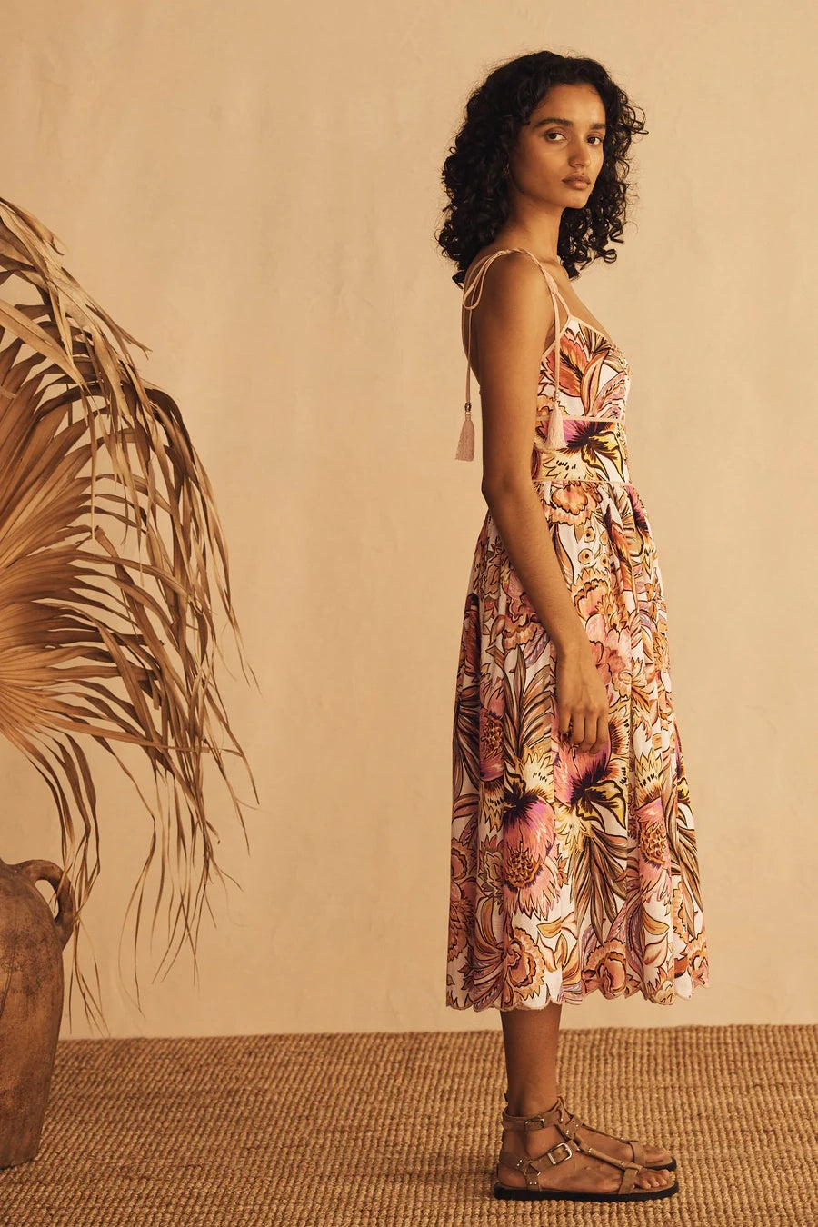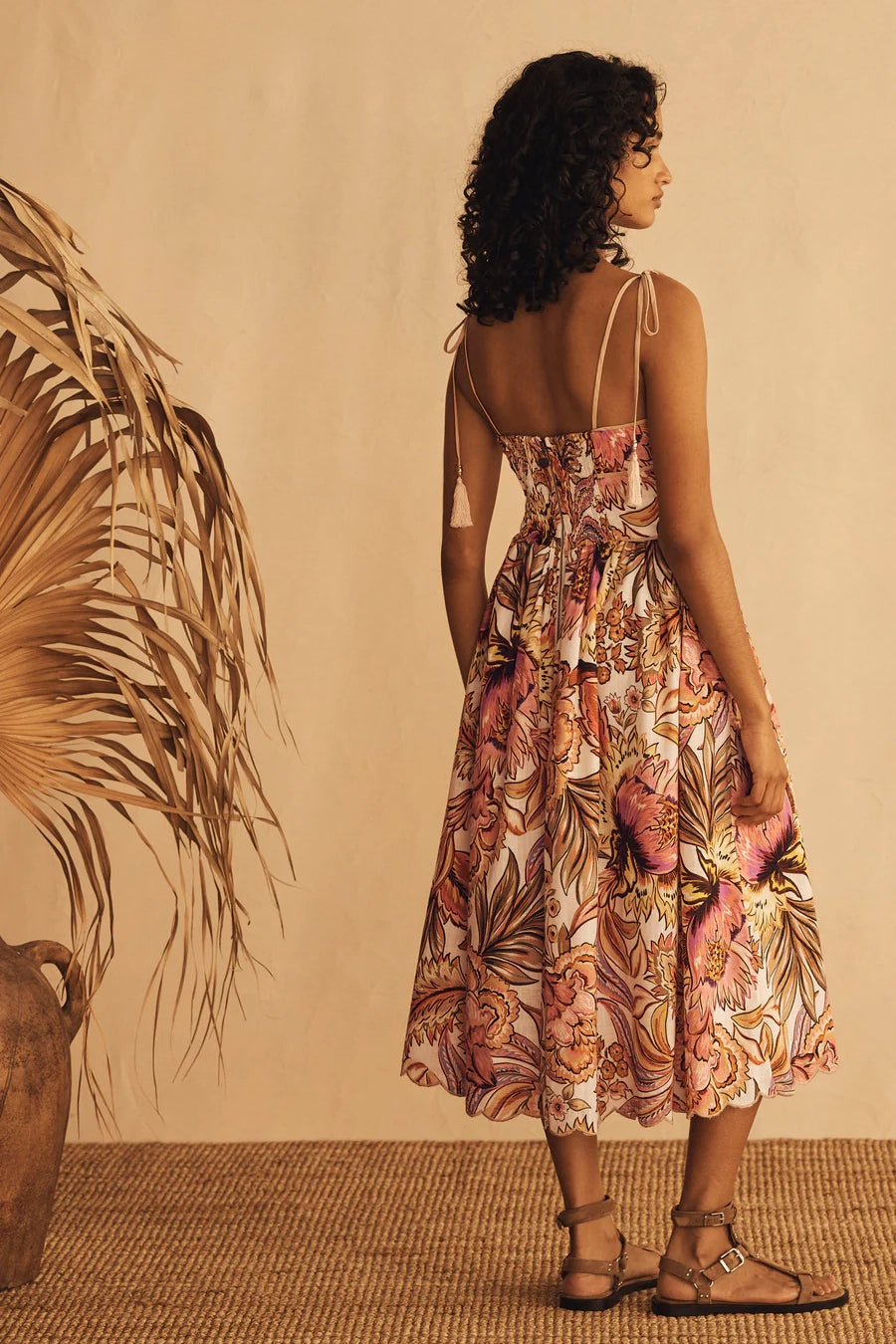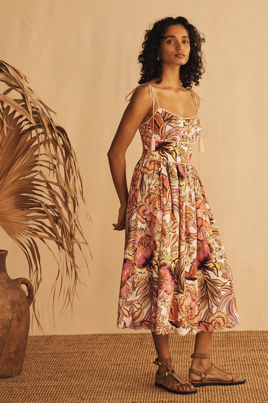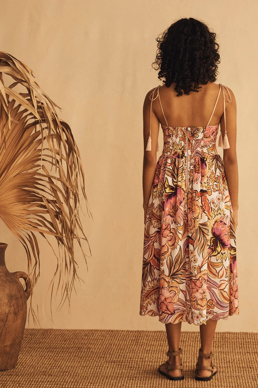 - Tie-close shoulder straps, tassel and bead detailing