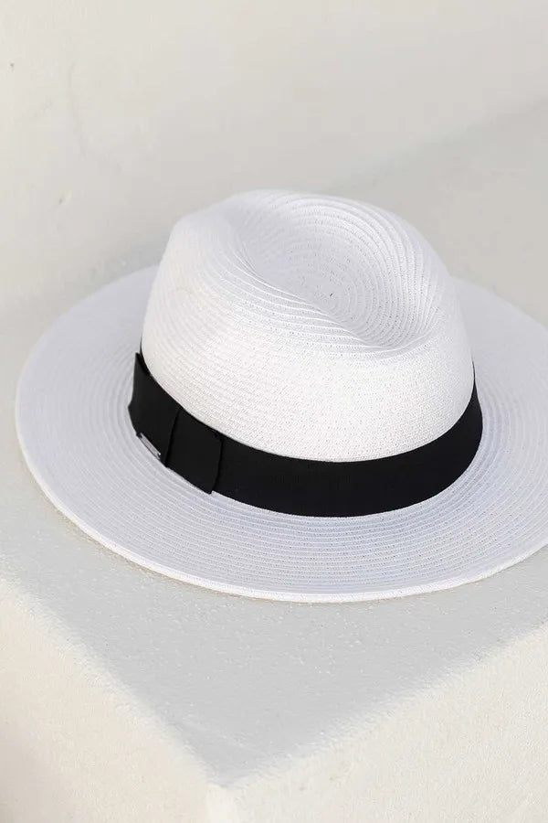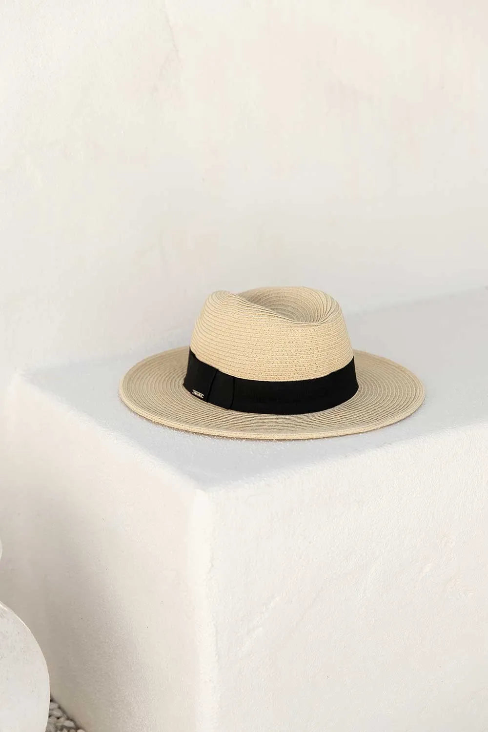 Classic style at its finest. The South Beach Hat features a sleek 7cm flat brim that's perfect for shielding the sun without hiding your face. Crafted from woven texture and finished with a timeless black band, it’s the perfect complement to any beach ensemble.
