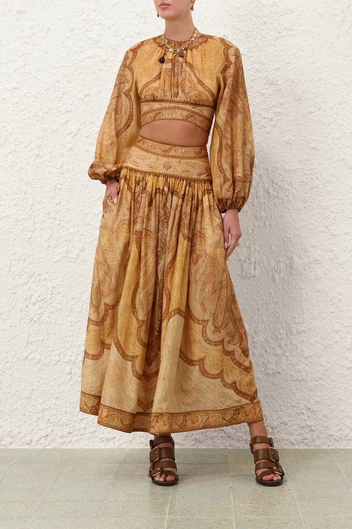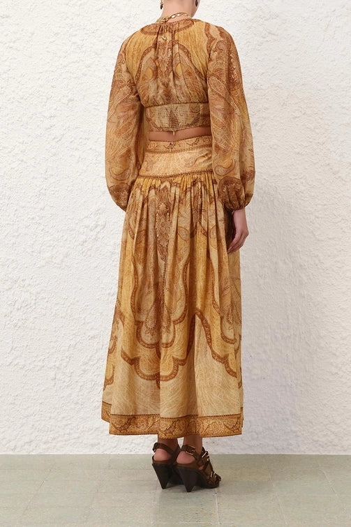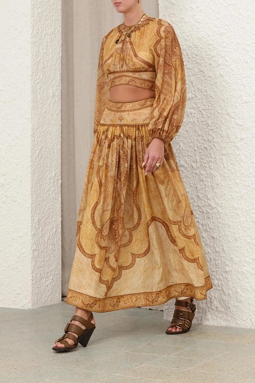 The Wanderlust Maxi Skirt in Tapestry Mustard Multi from our Resort Swim 2026 Collection.